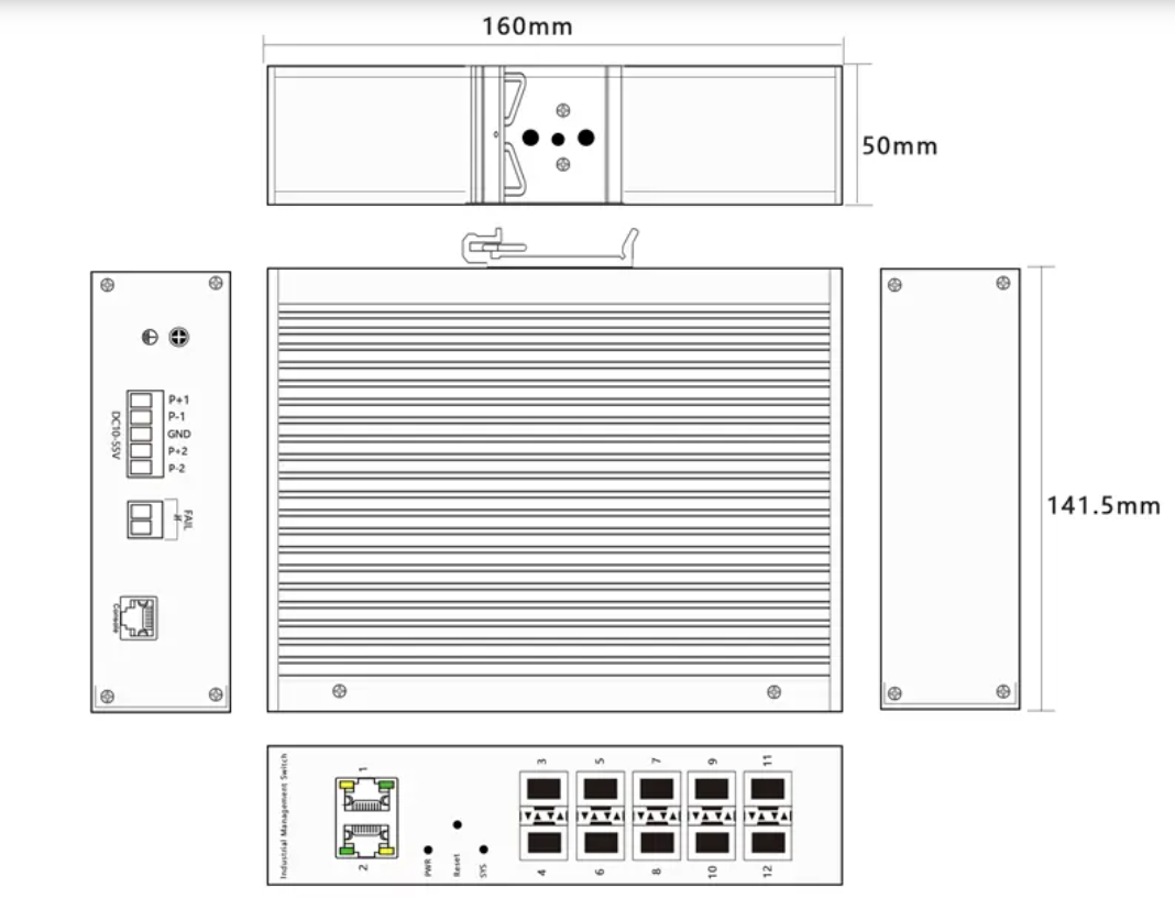 3CI-SFP1002TGM is a high performance, cost-effective high-end managed industrial Ethernet switch. The switch provides 2 10/100/1000Base-T(X) Ethernet port and 10 1000Base-X SFP slot. The use of a Ring technology (network fault recovery